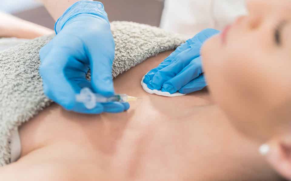Plasma is taken from your own blood and then enriched with concentrated platelets, which are then activated to generate additional growth factors. This platelet-rich plasma is then injected back into your neck.